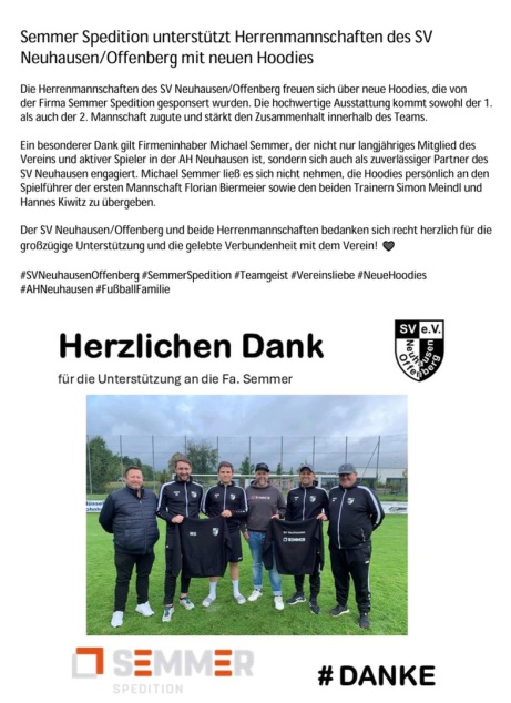Der SV Neuhausen bedankt sich ganz herzlich für dieses großartige Sponsoring! Solche Engagements sind nicht selbstverständlich und helfen uns, den Teamgeist und die Freude am Fußball noch weiter zu stärken. Ein einheitliches Outfit schafft Identifikation und Stolz – Werte, die im Vereinsleben und besonders im Jugendfußball eine große Rolle spielen. Die Kinder und das gesamte Trainerteam freuen sich riesig über die neuen Shirts und tragen sie mit Stolz auf und neben dem Platz!
